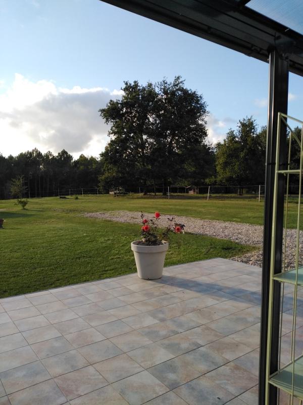 A l'exterieure, 1 portail électrique, une terrasse cotê Est de 30 m² et côté Ouest de 70 m² avec une pergola de 40 m², donnant sur le jardin.