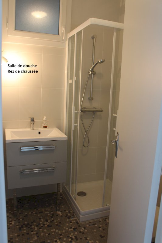 - Au rez de chaussée : 1 entrée avec la cage d’escalier + 3 chambres avec placards + 1 salle de bains (douche et WC) + 1 grand garage traversant pour 2 voitures (et deux places de parking dans la cour devant la maison).