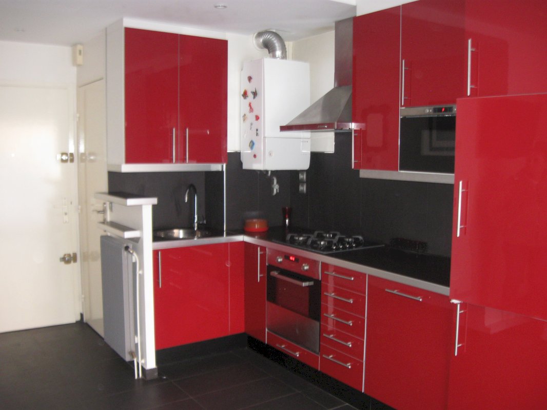 Cuisine équipée ,réfrigérateur congélateur, lave-vaisselle, plaque 4 feux gaz, four pyrolyse, micro-ondes, hotte, etc...