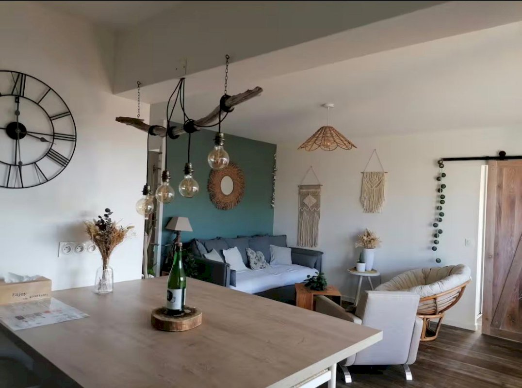 Séjour et cuisine ouverte, avec vue sur la Coline de Bordagain, pas de vis à vis.