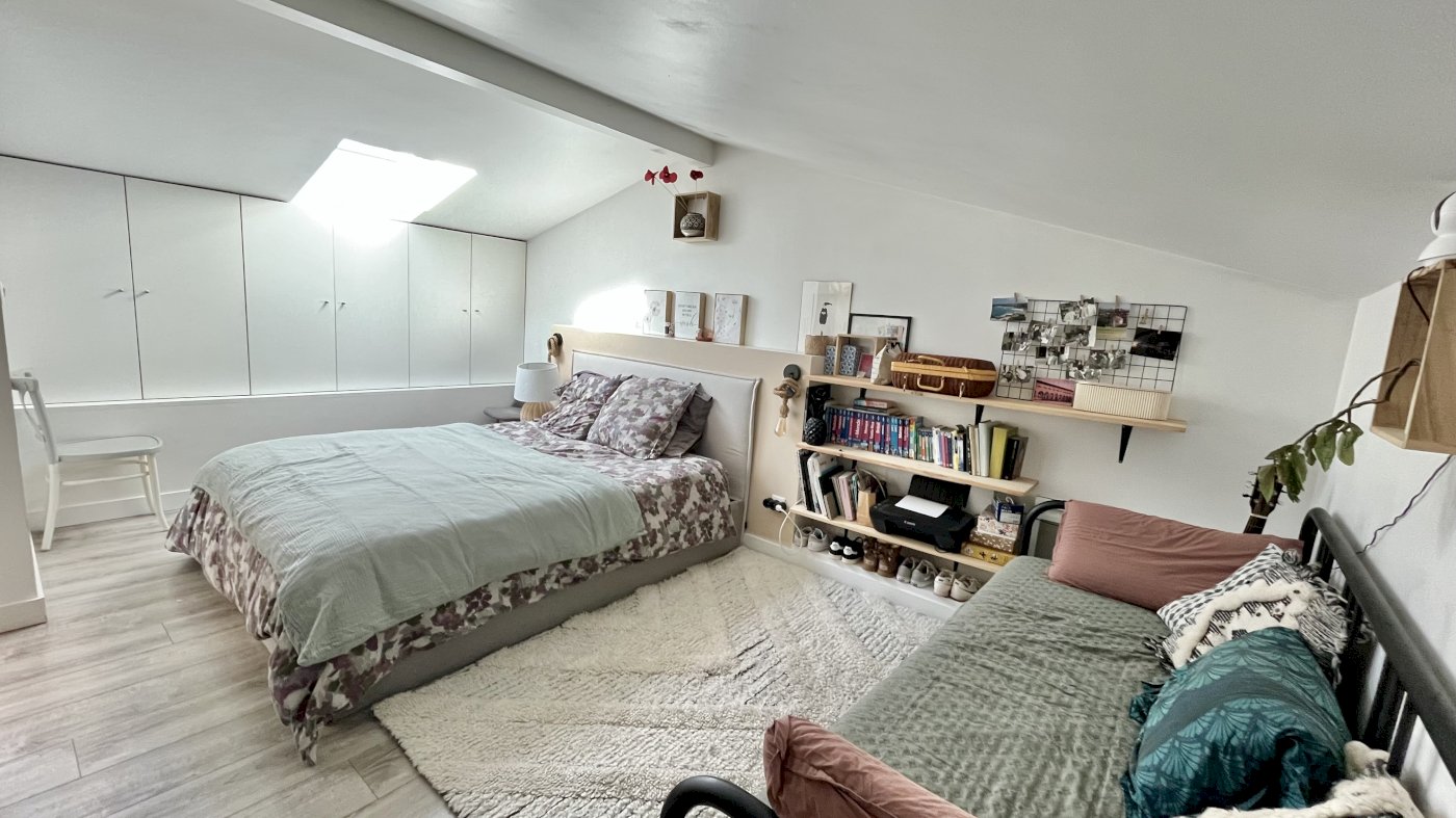 • L’étage dispose d’une belle suite parentale de 22 m², composé d’une grande chambre avec dressings aménagés sur tout un pan de mur (possibilité d’exploiter le mur parallèle également) et d’un salle d’eau spacieuse, avec rangements.