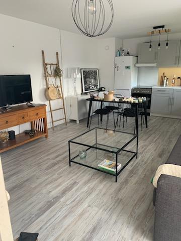Charmant T2 de 46 m² bénéficiant d‘une grande terrasse de 12 m² sur laquelle donnent la chambre et la séjour, est orienté sud ouest et offre une vue dégagée sur jardin sans vis à vis.