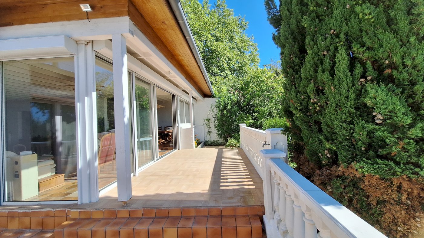 Cette maison spacieuse, construite en 1973, modernisée et entièrement rénovée, est habitable immédiatement. Elle présente une habitation principale (200 m²) et un appartement secondaire (65 m²), plus 70 m² d’annexes, sur un terrain de 1681 m².