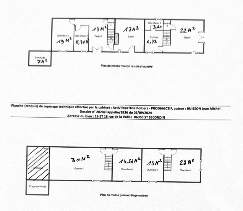 Séjour, cuisine deux salles de bains WC, douches. rez-chaussée 1 chambre. à l'étage 3 chambres, possibilité d'une extension de 30 M² et de relier les deux appartements en un seul. Cellier 7 M².