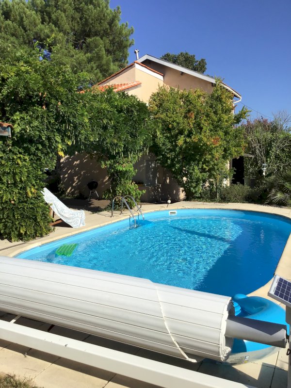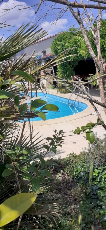 Maison spacieuse de 160 m², sans vis à vis, sur terrain arboré de 1 028 m², avec piscine 8x4, grande terrasse couverte, et dépendance indépendante de 50 m² pouvant offrir un beau potentiel de réhabilitation.
