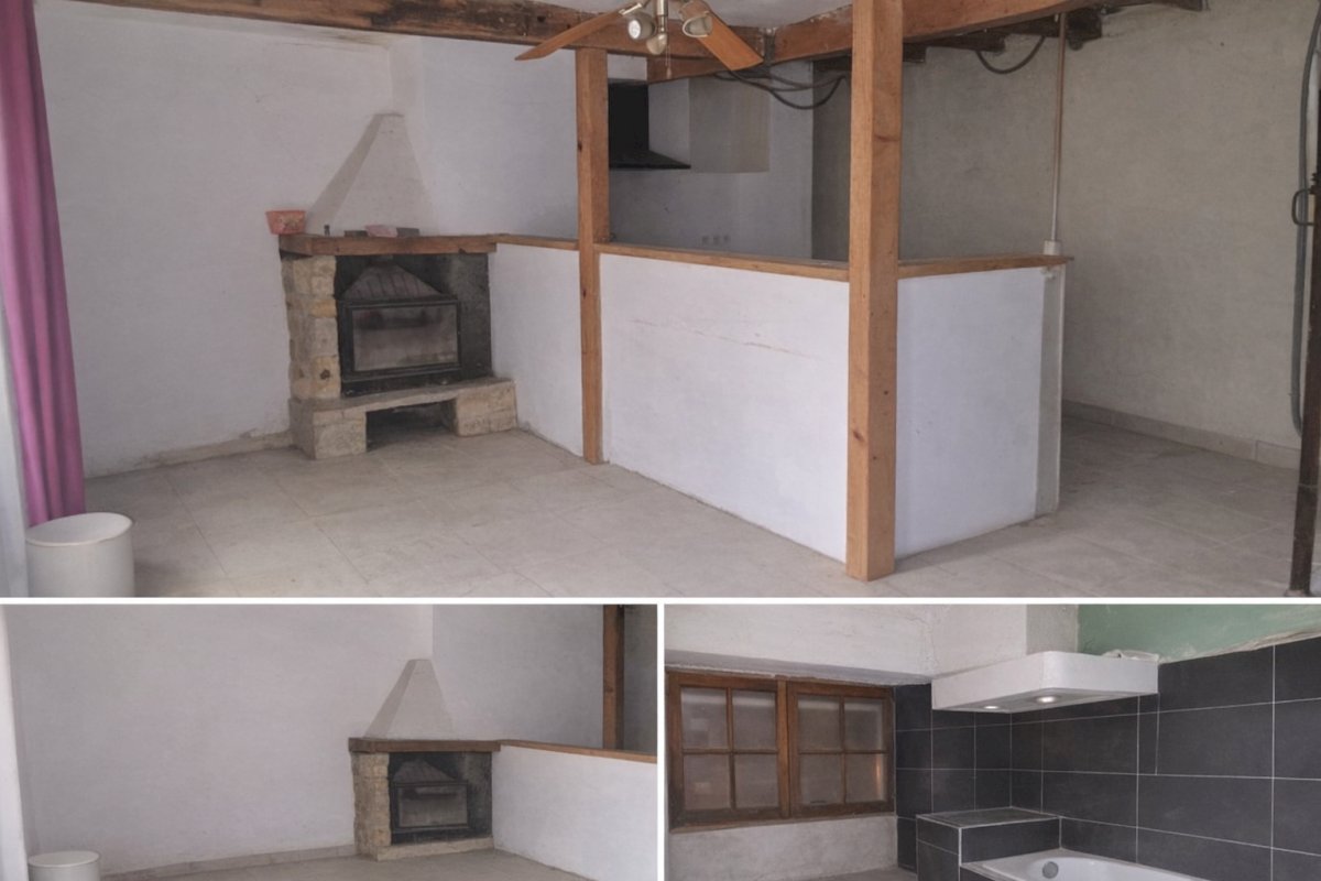 Ancienne bâtisse séparée en 2 donc mitoyenne, travaux à faire menuiserie fenêtre portes et électricité à mettre aux normes.