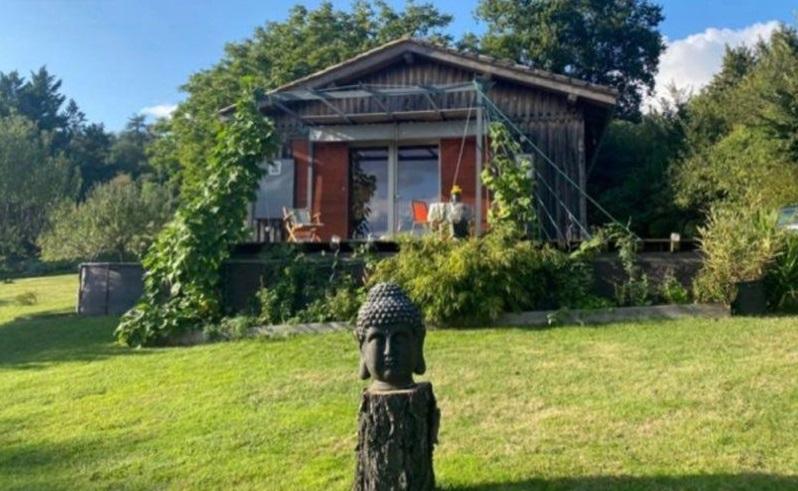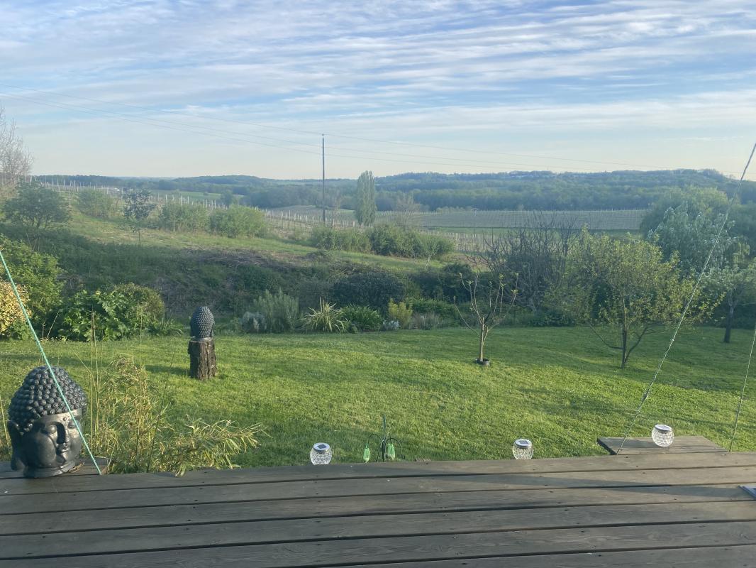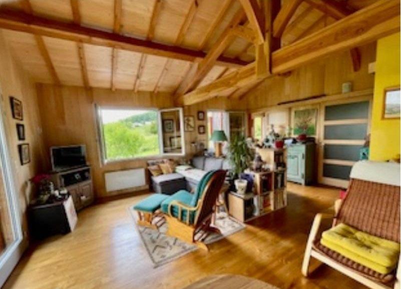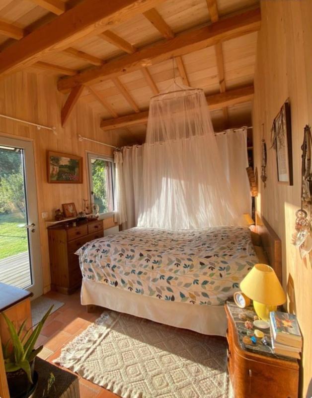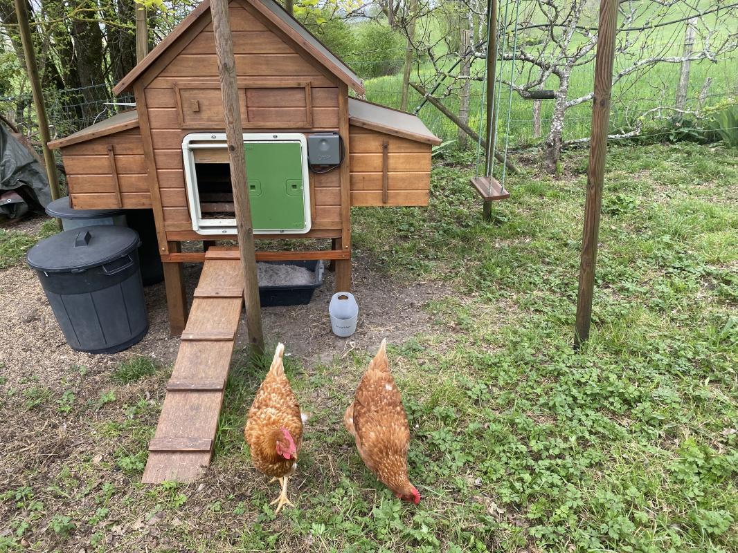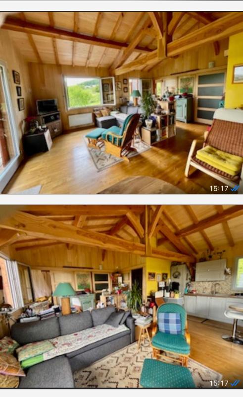 Maison mélèze intérieur peuplier clair et Douglas, charpente à l'ancienne, de plein pied sud, accès handi construite par maître compagnon avec 50 m² de terrasses dominantes de jolies vues, très au calme, lumineuse, fenêtres OB bois intérieur, alu extérieur, dans verger bio clos de 2100 m², avec puits et ex lavoir, piscine hors sol, poulailler porte automatique, robot tondeuse, 3 abris jardin.