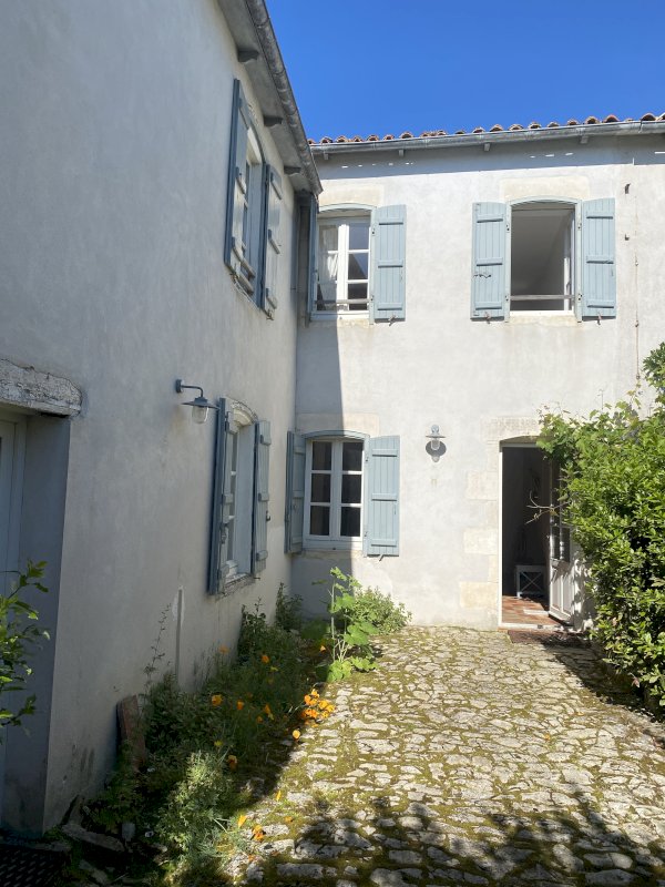 Située à La Noue, à deux pas de la place des Tilleuls, entre plage et commerces : maison rétaise s’ouvrant sur une cour pavée.