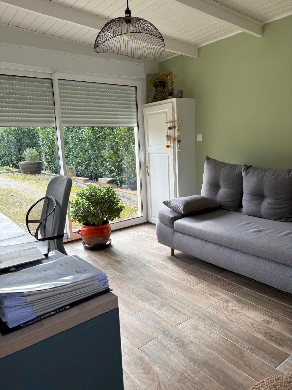 Maison en ossature bois et finition crépi, dont la construction a été achevée en 2017, d’une surface totale de 90 m², s’ajoute une dépendance aménagée de 16 m².