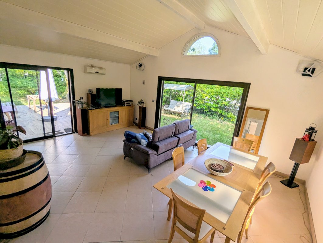 1 Salon 30 m² avec baies vitrées donnant sur jardin et terrasse.