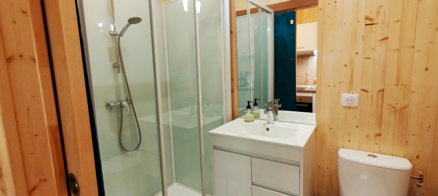 1) La maison principale, 115 m², avec cheminée, cuisine/salle à manger, trois chambres, deux salles d'eau, WC. Terrain 1800 m². Vue imprenable sur la forêt !