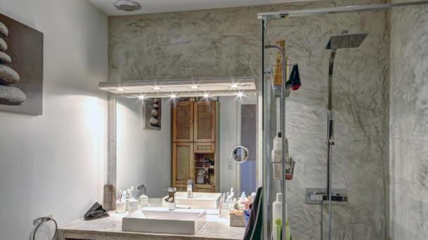 Parfaitement entretenue, 3 chambres toutes équipées de placards et branchement télé, 1 wc, 1 salle bain douche italienne (béton ciré), cuisine entièrement équipée, cellier, 1 bureau, séjour et salon.