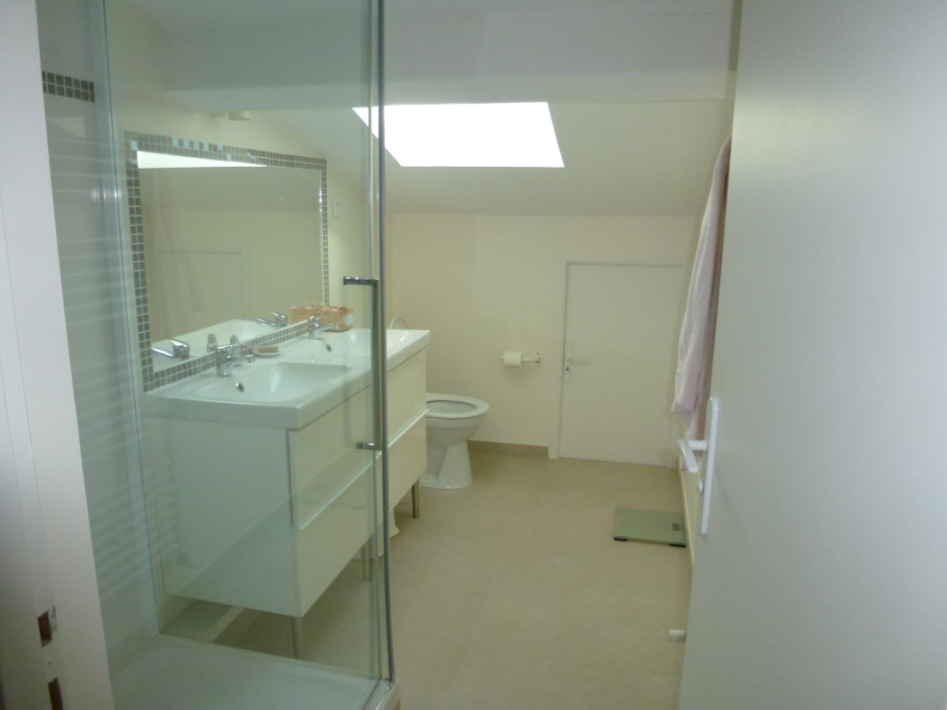 Elle se compose au rez-de-chaussée d'une entrée spacieuse avec de nombreux placards, d'un salon/salle à manger de 36 m², d'une cuisine, d'un bureau, d'une chambre et d'une salle d'eau avec wc.