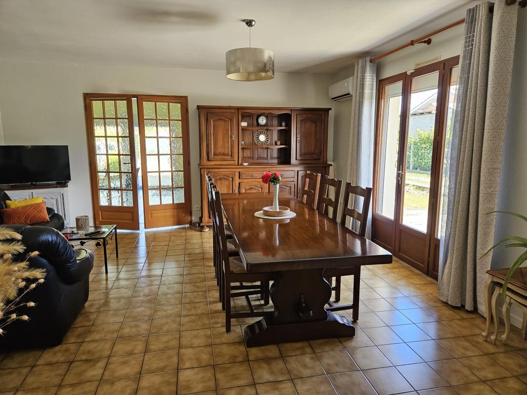 Salon, salle à manger, cuisine séparée,pièce à vivre (25m2)avec cheminée foyer ouvert,3 chambres,cellier, 1 wc séparé. Douche à l'italienne neuve pas de travaux à prévoir. Alarme, 2 clims réversibles. Volets roulants électriques. DPE "C".