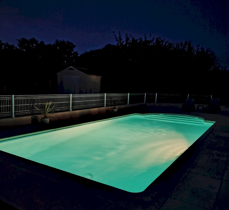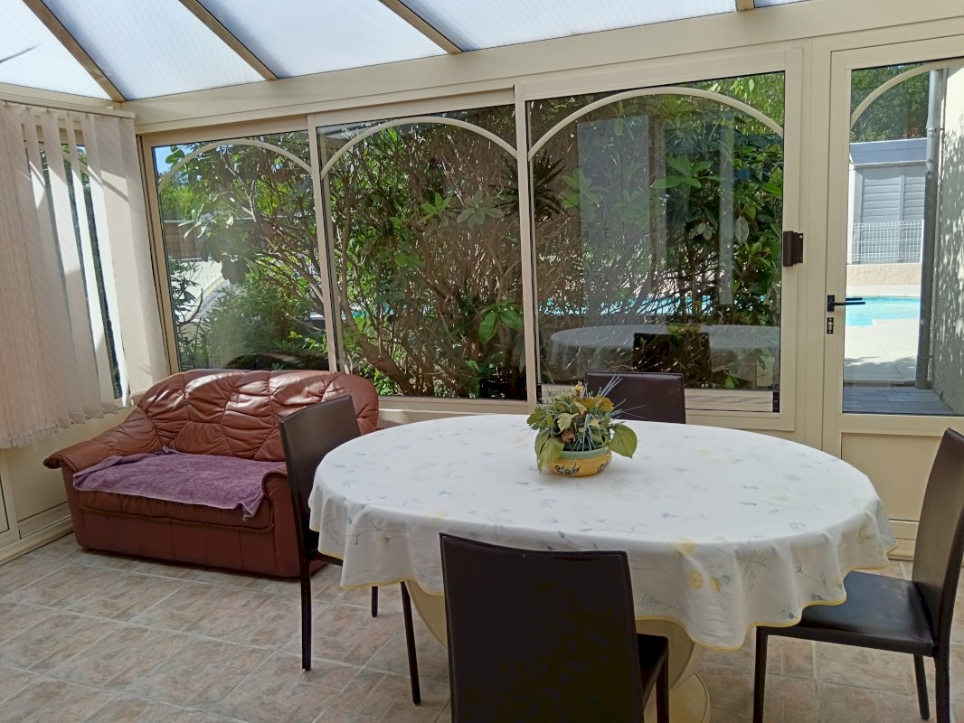 A l'extérieur, vous pourrez profiter de l'espace de ce terrain de 1150m², avec arbres fruitiers. Vous apprécierez la piscine au sel de 10mX4m (dont escalier Roman), entourée d'une belle terrasse d'environ 80m² en dallage pierre. Cette piscine est sécurisée par des panneaux de grillage rigide et 2 portillons de sécurité.