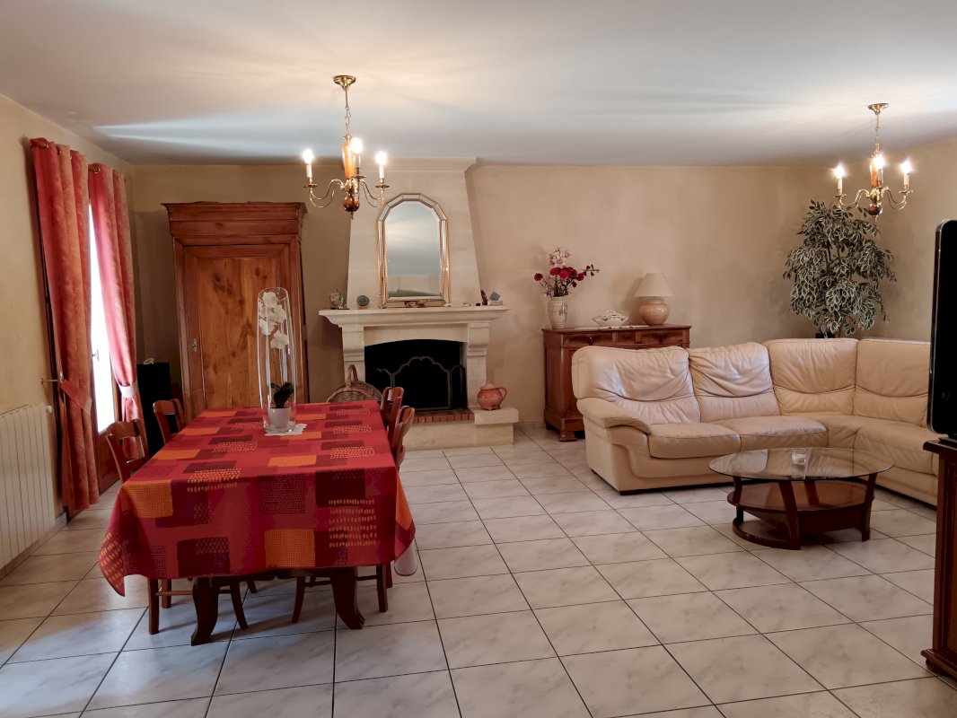 - d'un séjour de 38m² avec cheminée en pierre, séparé du hall d'entrée de 8,3m² par une arcade en pierre;