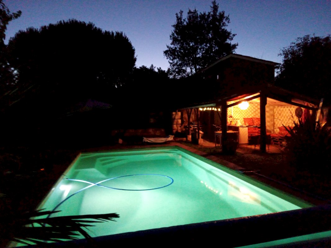 A l’extérieur par le biais d’un petit chemin privatif fleuris, l’espace Piscine sécurisé (8x4 sans vis-à-vis), Le Pool House avec cuisine d’été équipée, un barbecue et son jardin de 600M2 et enfin un garage avec mezzanine.