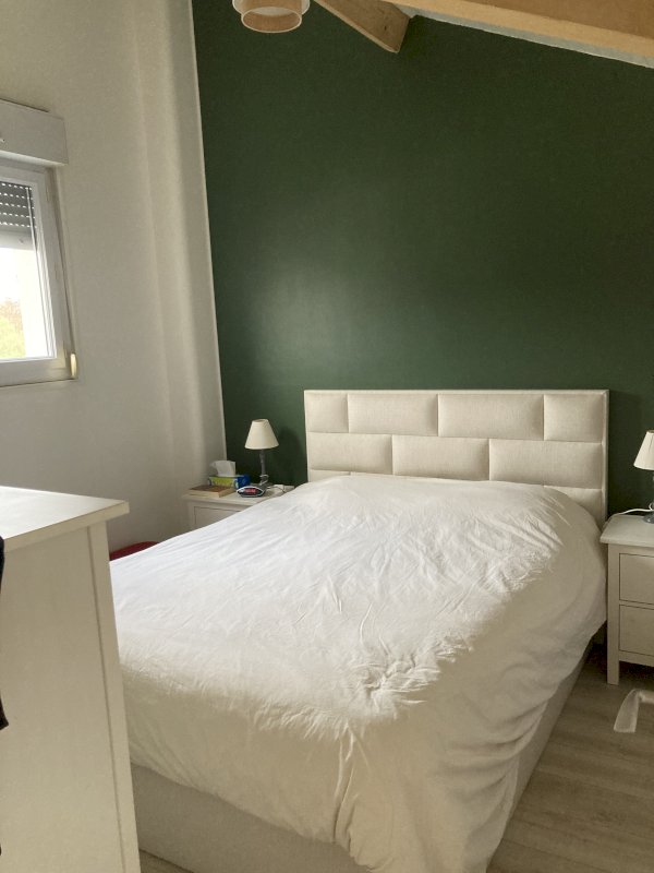 D’une superficie de 85 m², elle se compose d’une pièce de vie avec entrée, cuisine ouverte, salle à manger, salon. Le couloir dessert la buanderie, la salle de bain, les toilettes et 2 chambres. A l’étage, une mezzanine et une grande chambre.