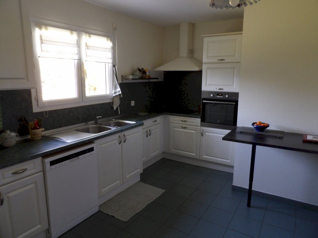 La cuisine de 12.72 m² entièrement équipée (LV, four, plaques induction) comporte de nombreux rangements.