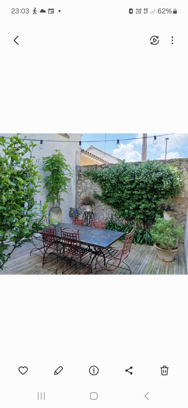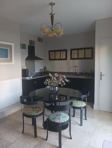 Maison centre ville composée d'une cuisine équipée de qualité, d'un salon avec cheminée, d'une cuisine d'été, de trois chambres avec placards, de deux salles de bain, d'un balcon, d'une terrasse, d'un grand garage et d'une cave.