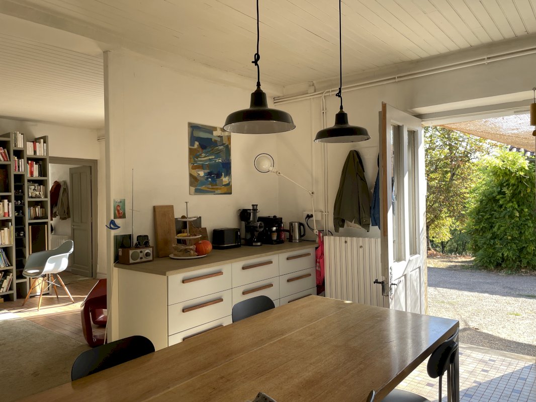 Maison de plain-pied orientée sud-ouest: 2 chambres, séjour, cuisine, salle d'eau, chaufferie-buanderie.