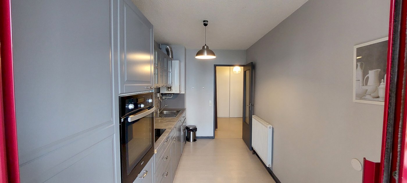 2 chambres, salon, cuisine séparée équipée, grande entrée avec placards, cellier (lave-linge, sèche-linge, planche à repasser, balais, électroménager... tout rentre !), grande salle de bains, loggia (accès cuisine et salon).