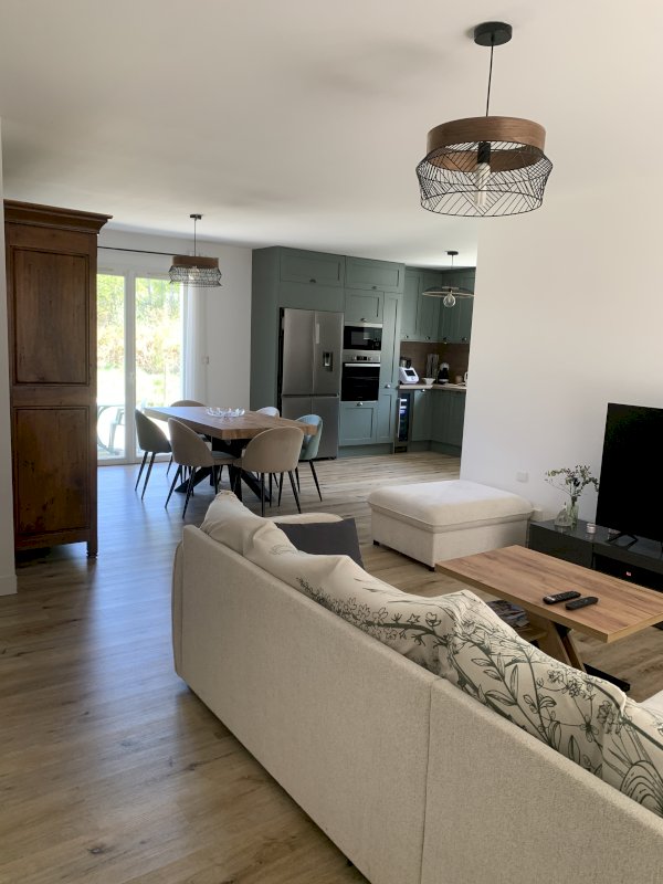 Maison de plain-pied 90m² avec garage indépendant de 35m² située en lisière de forêt dans la charmante commune de Lüe.
