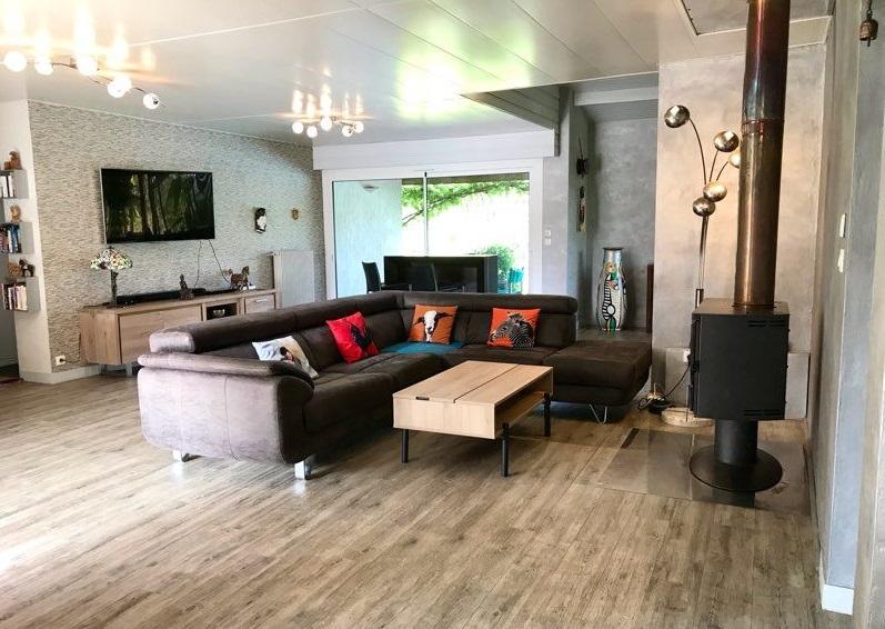 Chauffage par pompe à chaleur, complété par un poêle à bois dans le salon et le bois vient de la propriété.