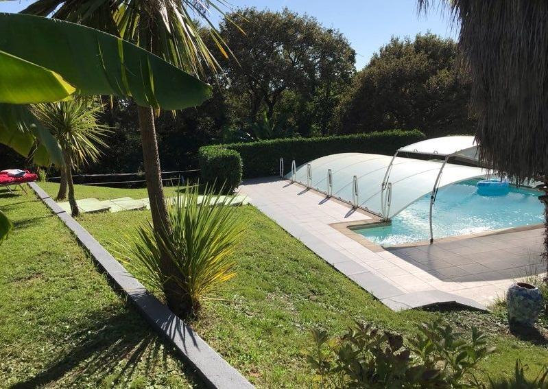 La piscine couverte de 12m sur 6 est en béton peint et la filtration est au chlore. La pompe et le filtre ont été changés il y a 5ans.