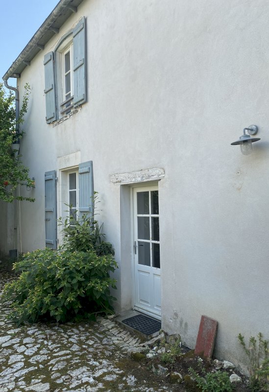 Située à La Noue, à deux pas de la place des Tilleuls, entre plage et commerces : maison rétaise s’ouvrant sur une cour pavée.