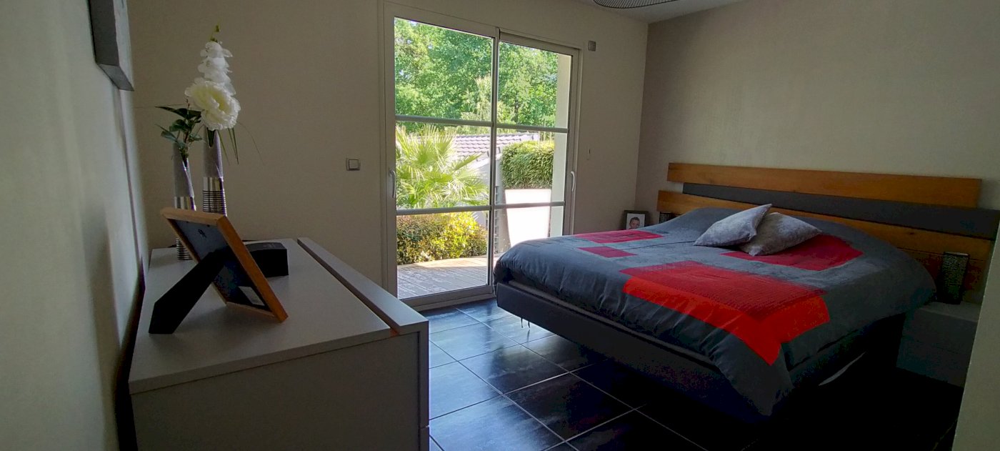 Maison contemporaine de plain-pied de 2010, très lumineuse avec sa double exposition, de 168m² avec jardin paysagé de 1500m² doté d’un arrosage automatique, alimenté par un puit.