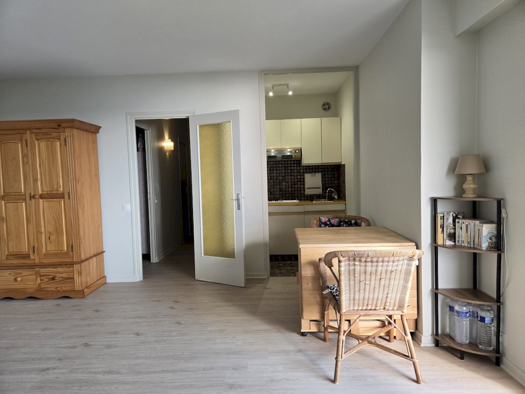 Récemment rénové, il se compose d'une entrée avec deux grands placards, d'une salle de bain et wc indépendant, d'une kitchenette donnant sur la pièce principale (25 m²) et d'un balcon (5 m²).