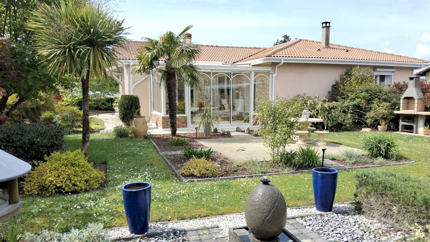 Sur le Bassin d'Arcachon à Biganos, dans un quartier résidentiel recherché, à deux pas des commodités, de la piste cyclable et de la gare SNCF, nous vous proprosons cette belle traditionnelle de plain-pied de 164 m² implantée sur un magnifique jardin paysagé de 1000 m².
