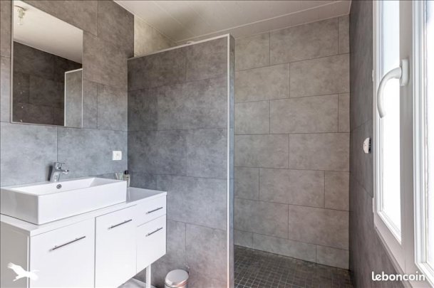 - une salle de bains disposant d'une grande douche à l'italienne et meuble vasque,