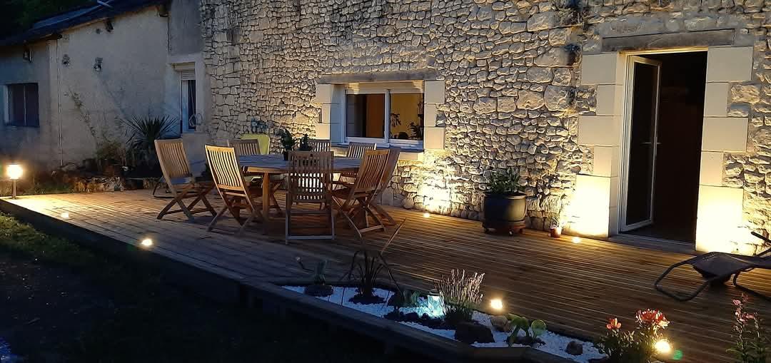 En extérieur vous pourrez profiter d'une terrasse bois de 45 m², attenante à la maison, d'une deuxième terrasse côté cour avec barbecue. Le terrain est arboré et très agréable.
