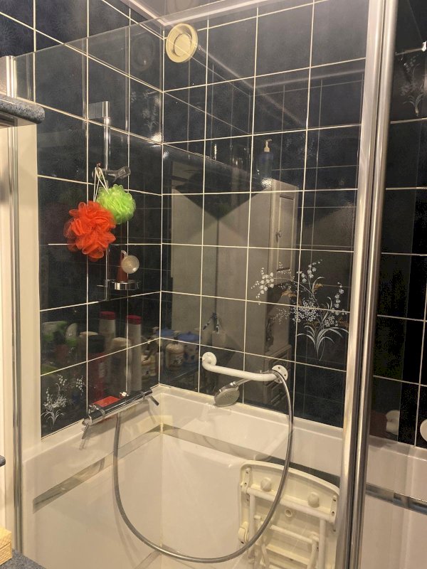 Entrée avec une porte blindée, couloir avec deux grands placards porte coulissante, 2 chambres avec parquet dont une donnant sur le grand balcon, 1 salle à manger salon ou chambre avec grand balcon qui donne sur un bel espace vert, 1 cuisine entièrement équipée avec un petit balcon et un cellier, 1 salle de bain entièrement carrelée avec sa douche pour PMR.