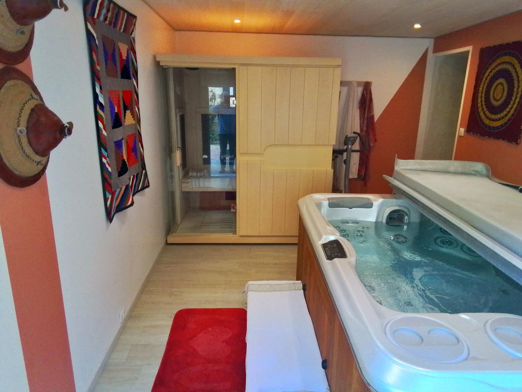 6 pièces dont une équipée d'un sauna et spa. Cuisine équipée.