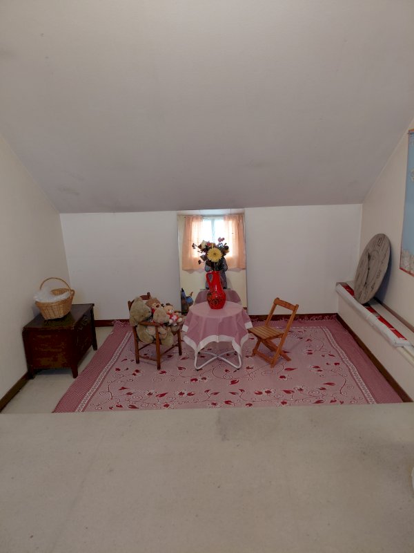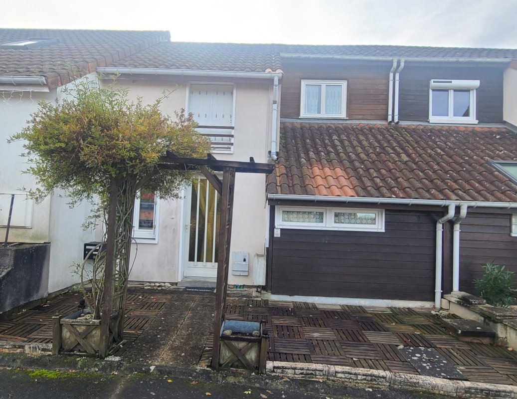 Terrasse entièrement carrelée avec pergola bioclimatique et petit terrain attenant.
