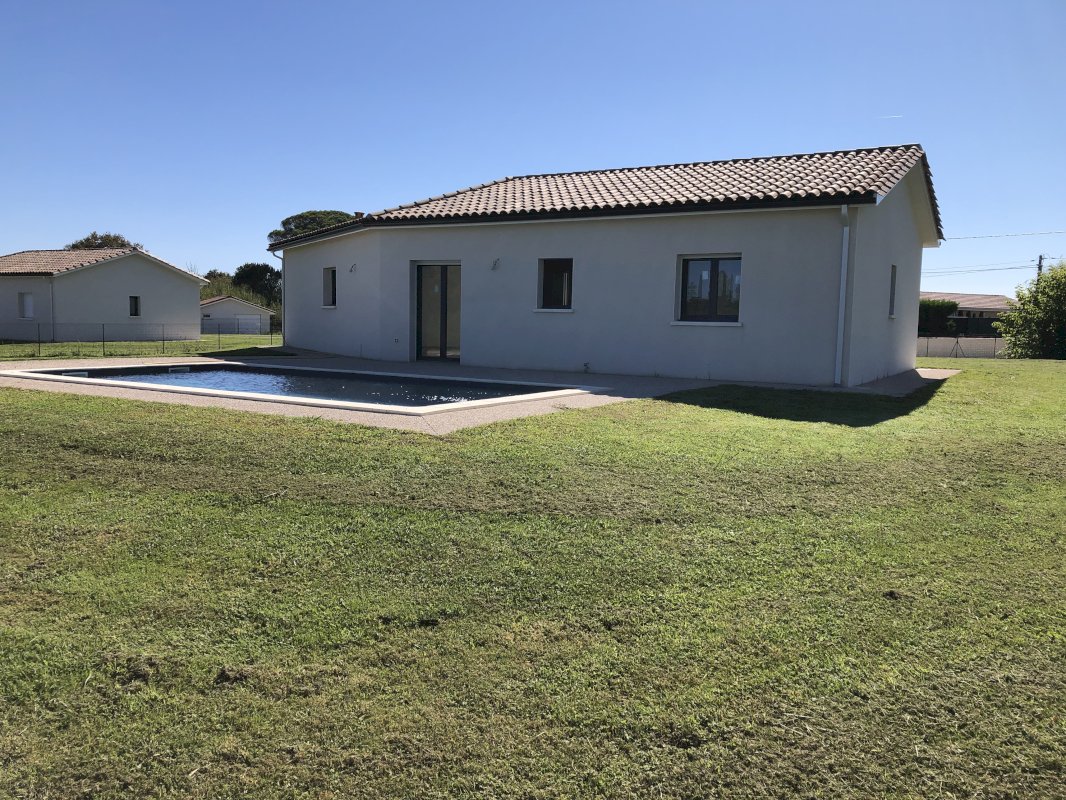 Située sur un terrain entièrement clôturé avec portail, trottoirs tout autour de la maison et terrasse entre maison et autour de la piscine (qui est en fonction) dimension 8x4.