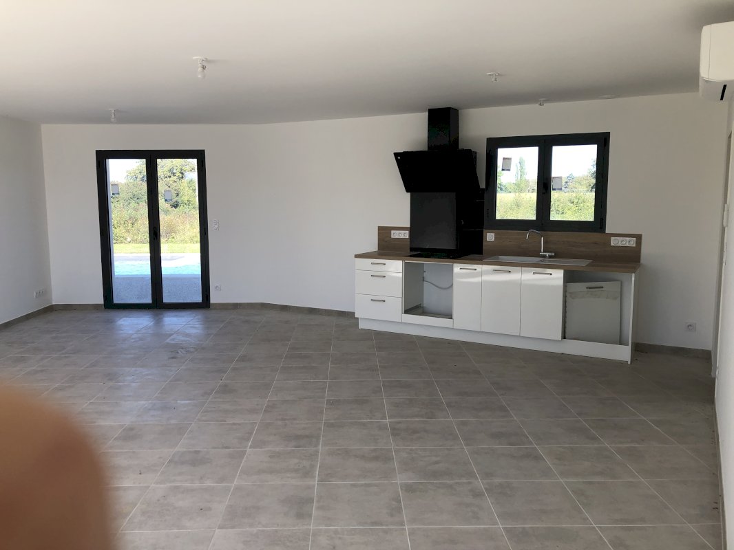 Pièce de vie avec cuisine équipée (plaque induction et hotte+Evier et mitijeur+meubles).