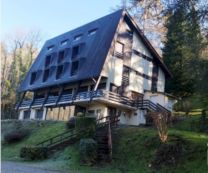 Duplex de 44.20 m² avec sous-pentes (41 m² en loi carrez), dans une copropriété de 27 lots située à la sortie de Laruns en direction des stations de Gourette et Artouste.