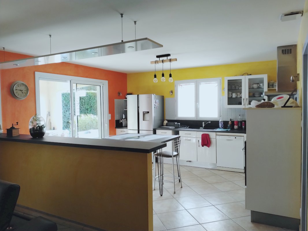 Cuisine équipée ouverte sur salon et salle à manger pour une superficie de plus de 60 m². Chauffage électrique et poêle à granulés. Une salle de bain et une salle d'eau dans la suite parentale. Deux WC. 6 chambres dont 4 équipées de placard intégré.