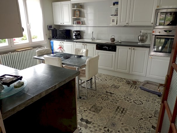 La cuisine de14 m2 et son arriere cuisine de 6m2 équipées et aménagées Au rez de chaussé deux chambres 11et14m2 sur parquet de chene vitrifié, salle de bain et wc séparé ( fenetre)
