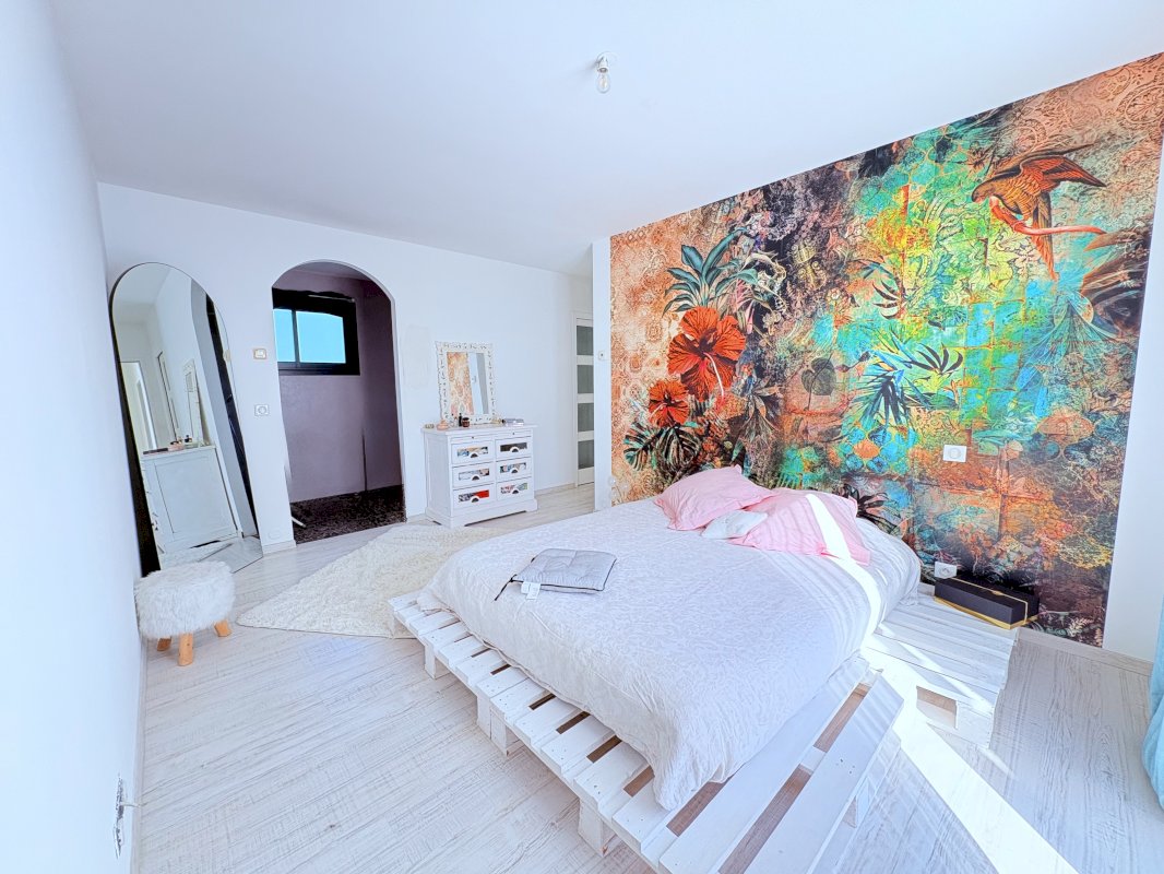 La pièce de vie spacieuse et baignée de lumière s’ouvre grâce à ses baies vitrées à galandage sur une grande terrasse carrelée et une piscine 10x5, offrant un véritable espace de détente et de convivialité.