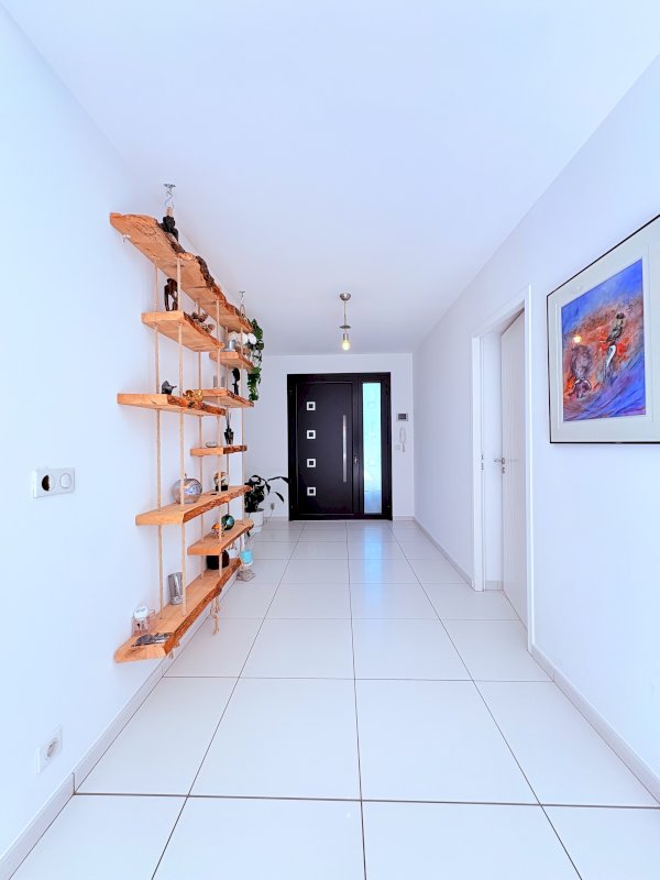 La pièce de vie spacieuse et baignée de lumière s’ouvre grâce à ses baies vitrées à galandage sur une grande terrasse carrelée et une piscine 10x5, offrant un véritable espace de détente et de convivialité.