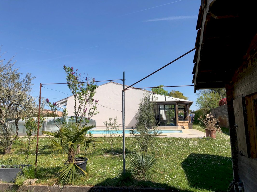 Coté extérieur, une piscine à sel 5*10 m couverte d'un dôme sur terrasse carrelée, avec local piscine et abri jardin de 4 m², un potager et jardin arboré.