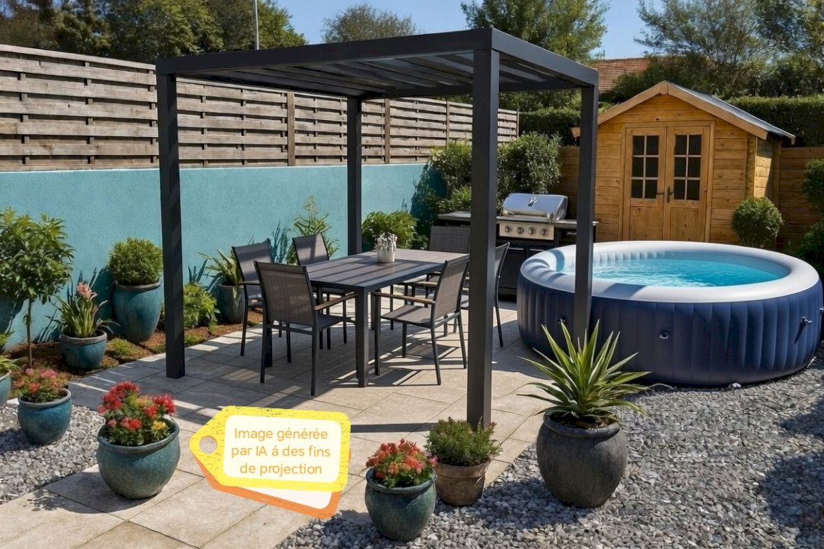 - Possibilité de stationner 2 véhicules confortablement et de profiter d'un coin repas en plein air.