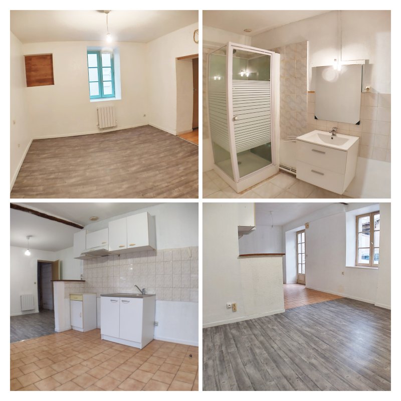 Appartement 92 m² avec Entrée, couloir, WC, 2 chambres (dont une de 19 m²), SDB avec baignoire d’angle, séjour ouvert sur cuisine, cuisine avec placards et plans de travail et un grand garage (locataire en place).