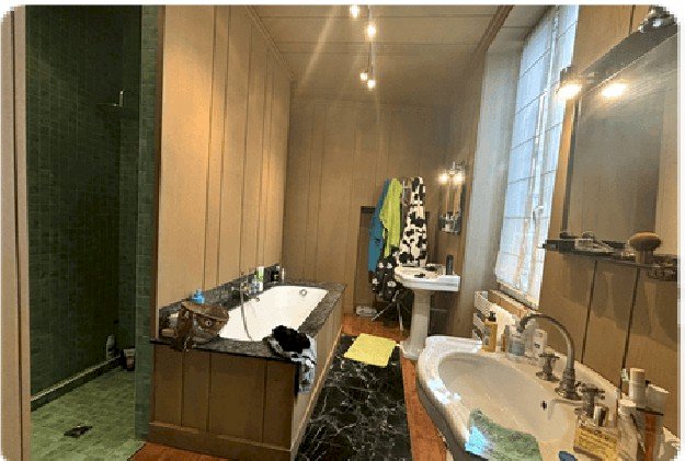 • Au rdc, un grand plateau lumineux (40m² de baies vitrées) de 70 m² très bien agencé avec cuisine, séjour, cheminée, coins salon, patio arboré, pelouse synthétique, véranda avec protection solair , buanderie, cave, petite chambre d'amis avec douche, 2 wc.