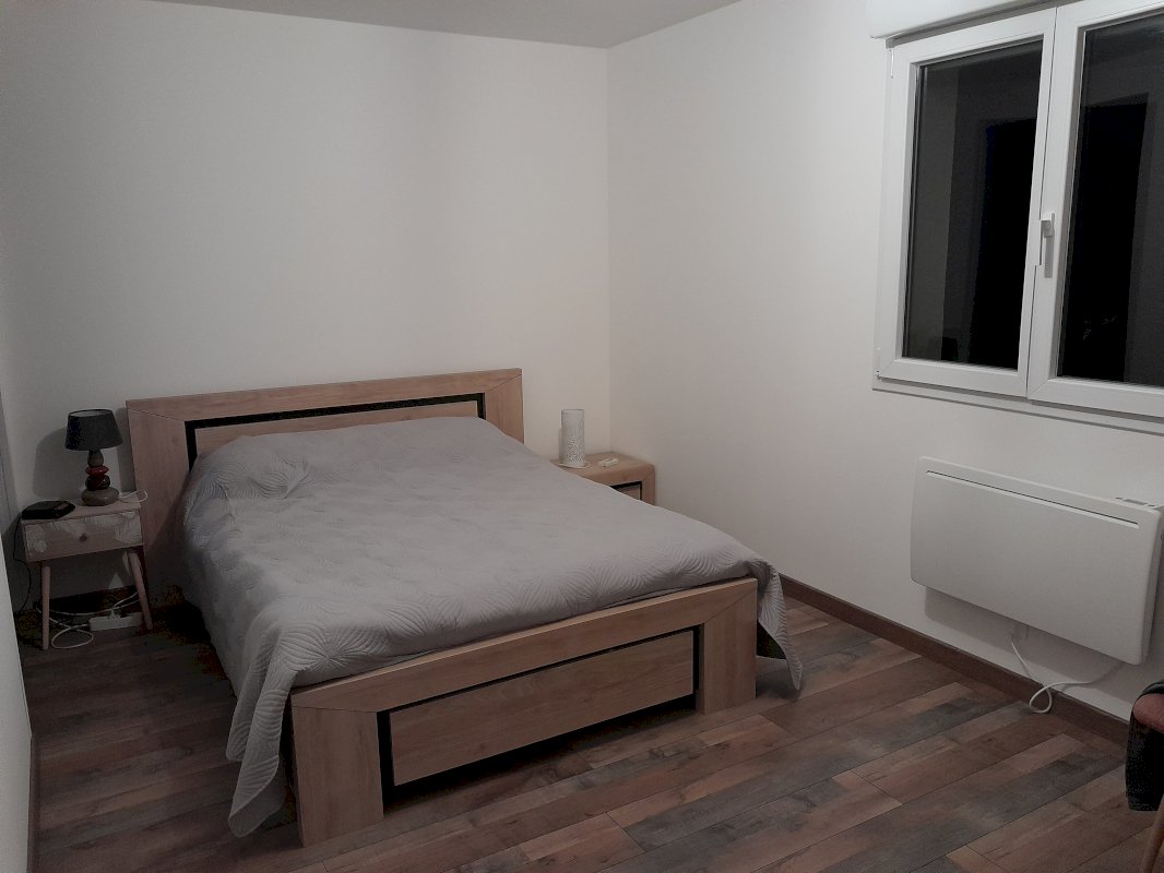 Dans petit village à Ozillac, maison en ossature bois de 2024 comportant une grande pièce à vivre et 2 chambres et une 3ème chambre est possible facilement, salle de douche, plus salle de bain, cuisine aménagée, avec terrasse donnant sur un jardin avec piscine water-air de 20 m3.